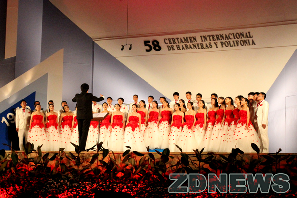 比赛中,浙江大学文琴合唱团的表演不仅继承了哈巴涅拉音乐的传统风格,更融入了本民族的特色。他们以东方人特有的细腻精致和音色的通透唯美,打动了评委和观众。在必选曲目《问候古巴》的演绎中,浙大学生的演唱精彩绝伦。世界哈巴涅拉大师MARIO BUSTILLO连称“浙大文琴合唱团的演绎非常奇妙”。